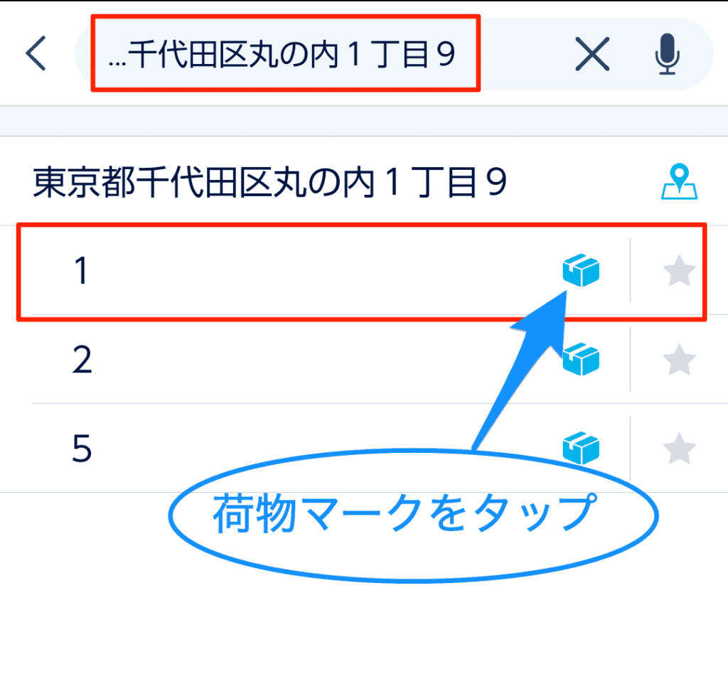 住所の最後までたどり着いたら、荷物マークをタップします。