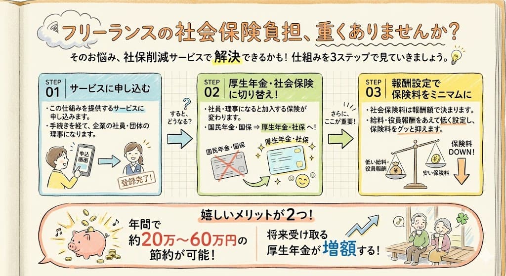 なお、協会の理事として加入するタイプのサービスも社会保険制度の範囲内で運営されています。いずれも制度上は適法ですが、説明を受けたうえで納得できるサービスを選ぶことが重要です。